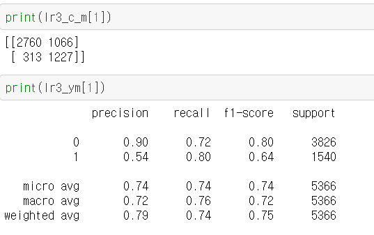 그결과 과적합이 되지않고 f1-score도 75%값을 얻었다.