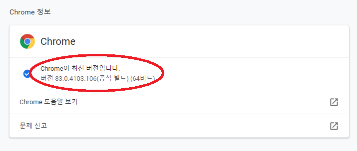 2.자신의 크롬 버전을 확인한뒤에 업데이트를 하고 다시시작한다.