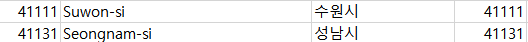 -시구로 나누어 져 있는 수원시에 대하여 하나의 행정코드로 합해줍니다.