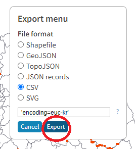 -우측 상단의 export를 눌러서 아래와 같이 CSV형태의 파일로 Export합니다