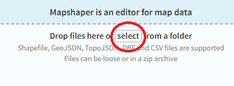 2. mapshaper에서 'select'를 눌러 shp 파일을 선택합니다.