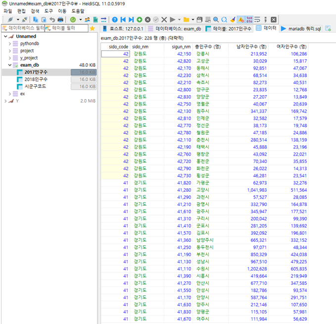-Load data local infile 'C:\\Users\\user\\Documents\\ex_mariadb\\2017인구수.csv' into table exam_db.2017인구수 CHARACTER SET euckr fields terminated by ',';