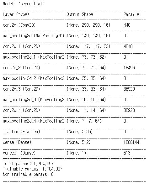 ImageGenerator클래스를 사용해서 0~255의 픽셀값들을 0,1 사이로 조정한 다음 모든 이미즈의 크기를 300 x 300으로 바꿔줍니다. 그리도 다중분류의 경우 categorical또는 sparse를 사용하고 이진분류에서는 binary를 사용합니다.