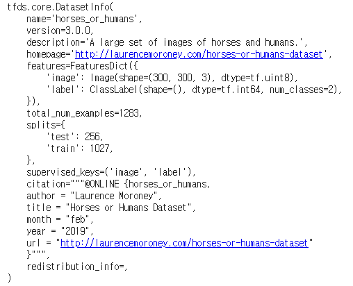 dataset, info = tfds.load(name='horses_or_humans', split=tfds.Split.TRAIN, with_info=True)