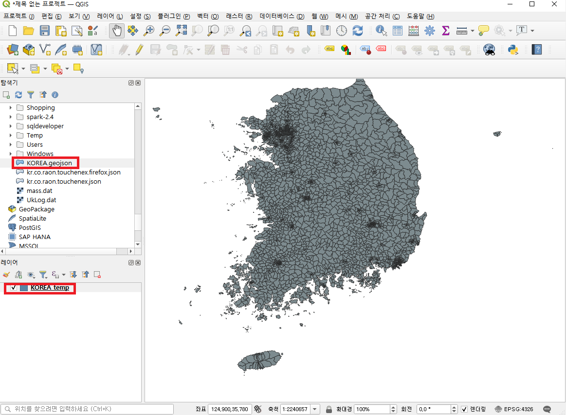 - QGIS를 실행한 후에 탐색기에서 다운로드 된 파일을 선택합니다