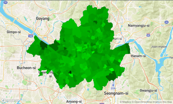 이제 mapbox_key를 통해서 서울시를 행정동 기준으로 pydeck을 이용하여 그려보겠습니다.