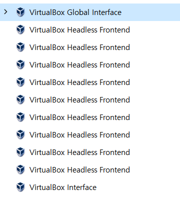 VirtualBox 관련 프로세스 모두 죽이고 다시 실행 (VirtualBox Headless Frontend, VirtualBox Interface)