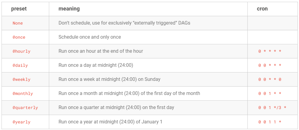 - 더 복잡한 스케줄 간격 설정을 지원하기 위해서 cron(macOS 및 리눅스와 같은 유닉스 기반 OS에서 사용하는 시간 기반 작업 스케줄러)과 동일한 구문을 사용해 스케줄러 간격을 정의함
