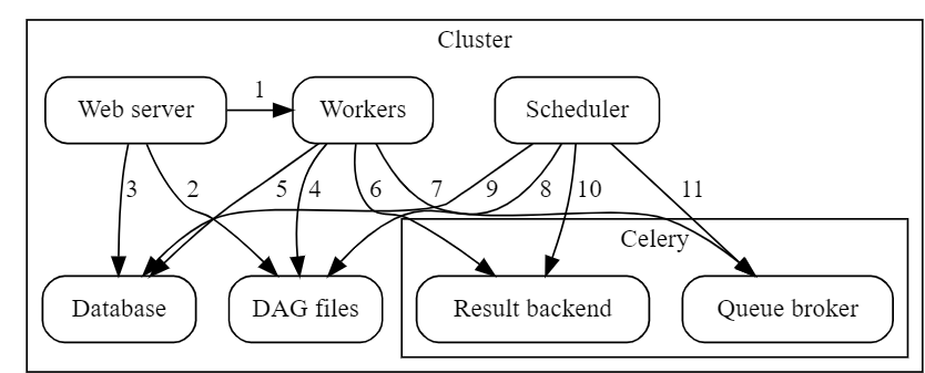 - 아키텍처는 SequentialExecutor와 유사하지만, 여러 하위 프로세스가 있어 병렬로 태스크를 실행할 수 있으므로 SequentialExecutor에 비해 빠르게 수행할 수 있습니다.