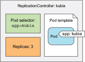 apiVersion: v1 kind: ReplicationController metadata: name: kubia spec: replicas: 3 selector: app: kubia template: metadata: labels: app: kubia spec: containers: - name: kubia image: luksa/kubia ports: - containerPort: 8080