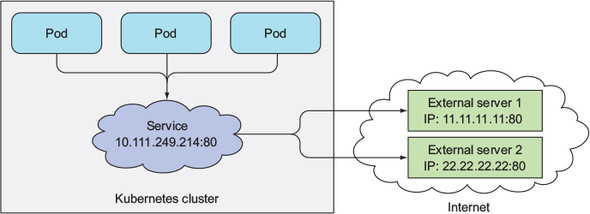 apiVersion: v1 kind: Endpoints metadata: name: external-service subsets: - addresses: - ip: 11.11.11.11 - ip: 22.22.22.22 ports: - port: 80