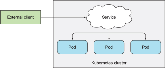 - 클라이언트는 해당 IP와 포트로 접속한 다음 해당 서비스를 지원하는 파드 중 하나로 연결됩니다.