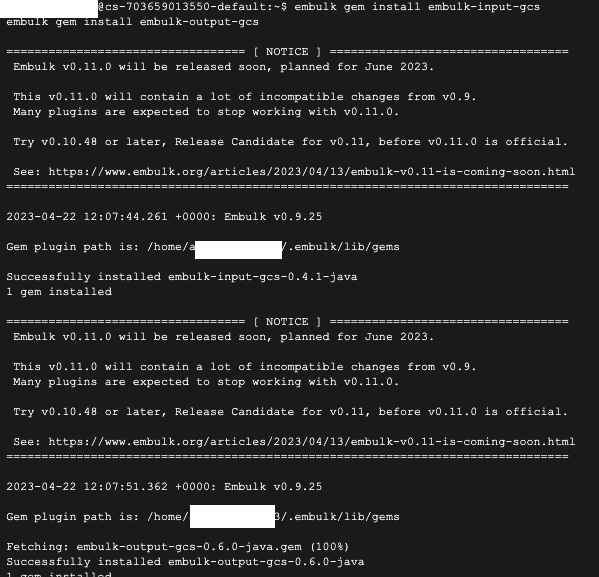 - embulk gem install embulk-output-gcs를 실행할 때 ERROR: Error installing embulk-output-bigquery:jwt requires Ruby version >= 2.5. 에러가 발생하여서 해결했습니다.