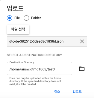 json_keyfile: /home/{유저}/test/{프로젝트 키}.json