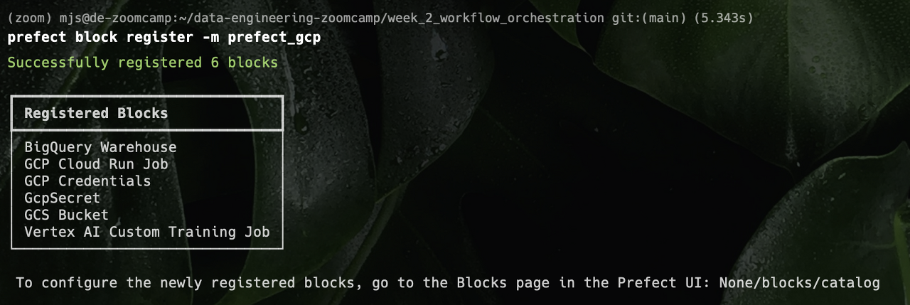 - Google Cloud Platform 용 Prefect 커넥터를 등록합니다.