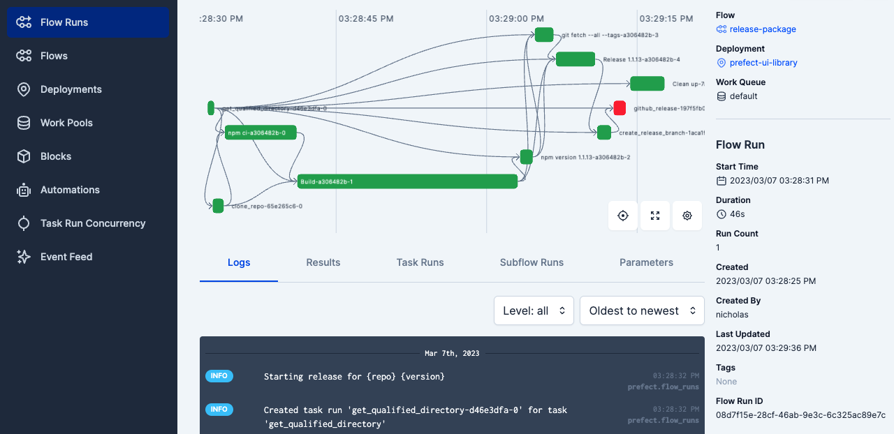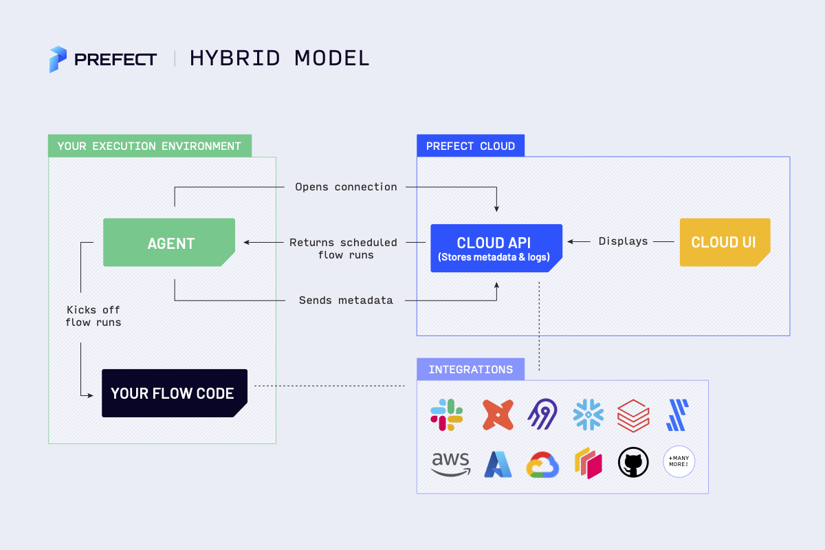 - Prefect CLI 또는 UI를 사용하여 생성, 업데이트, 중지 및 삭제할 수 있습니다. Deployment에 대한 상태 및 로그 정보는 Prefect Cloud 또는 Prefect Server UI에서 볼 수 있으며, 원하는 경우 다운로드하여 검사할 수 있습니다.