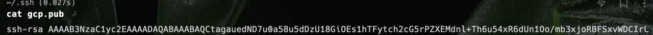 ssh-keygen -t rsa -f ~/.ssh/gcp -C mjs -b 2048