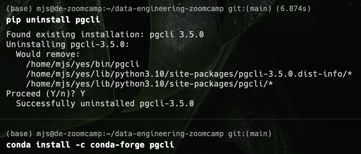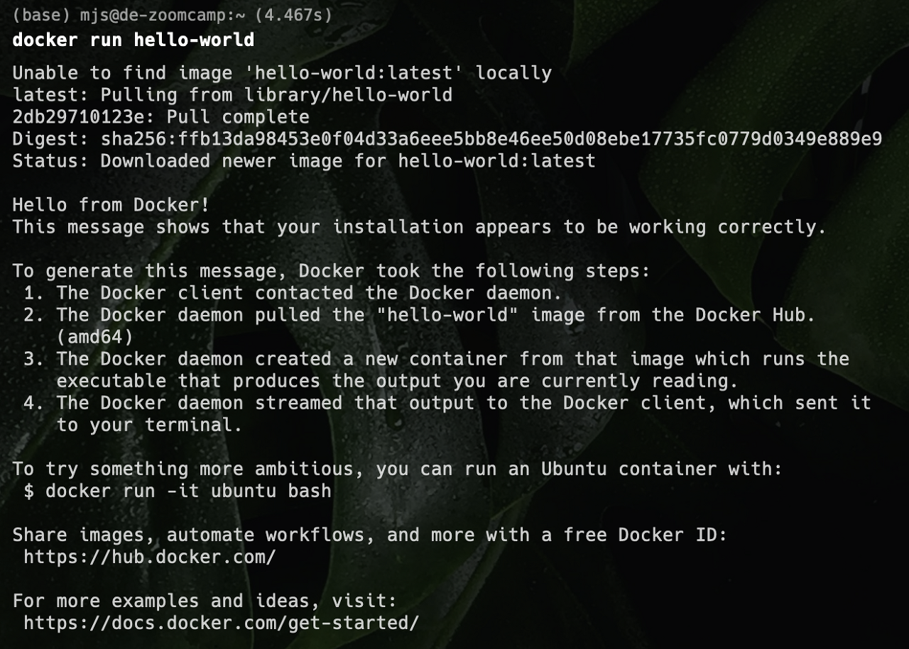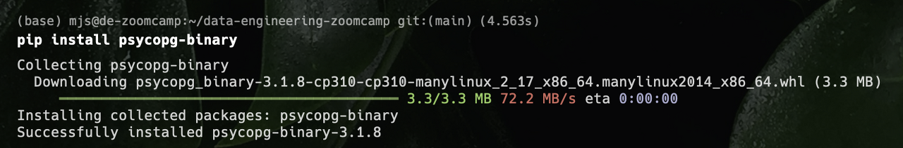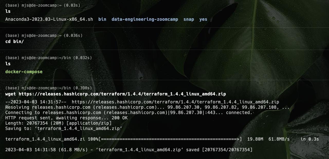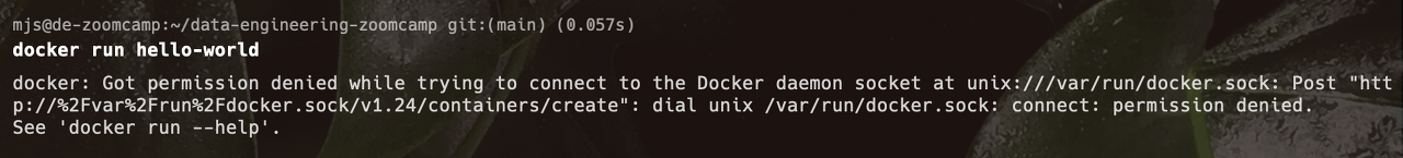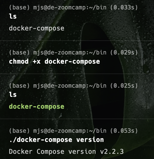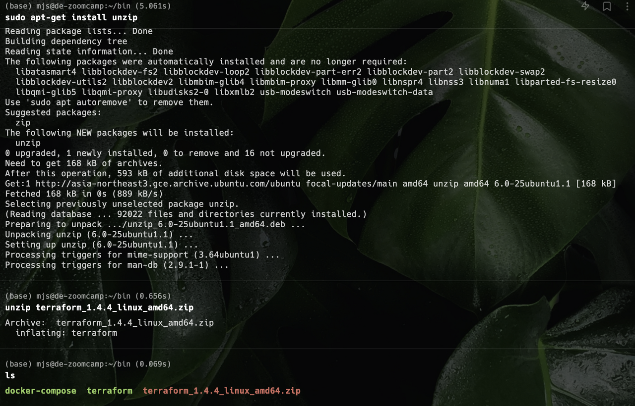 exit 후에 다시 ssh de-zoomcamp로 로그인해서 명령어를 실행하면 sudo 권한없이 잘 실행된다.