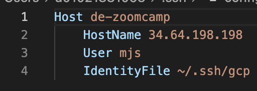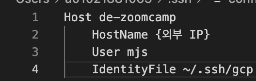 이제 config 파일을 통해서 ssh -i ~/.ssh/gcp {ssh키 생성시 입력한 ID}@{VM 생성시 외부IP} 명령어가 아닌