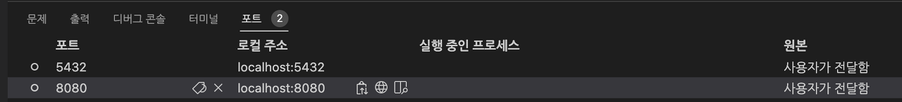 관련해서 터미널의 pgcli와 localhost:8080가 잘 연결되는지 확인합니다.