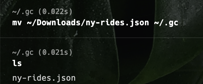 GOOGLE_APPLICATION_CREDENTIALS=~/.gc/ny-rides.json 내보내기