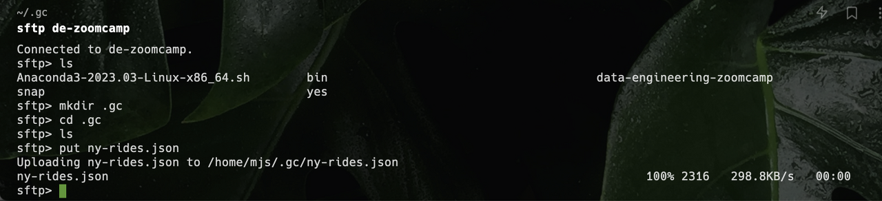 - sftp로 연결후에 파일을 업로드 해줍니다.
