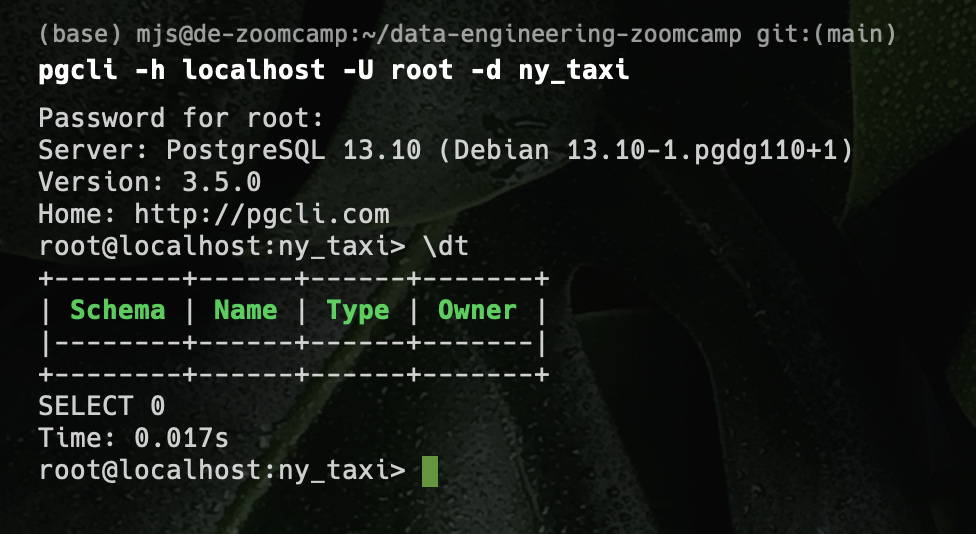git clone https://github.com/DataTalksClub/data-engineering-zoomcamp.git