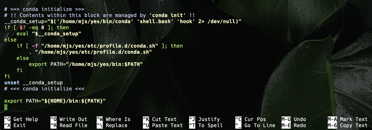 mac에서 ctrl+v 로 맨 끝으로 이동 후 경로를 추가해주고 ctrl+o로 저장후 Enter를 치고 ctrl+x 로 나옵니다.