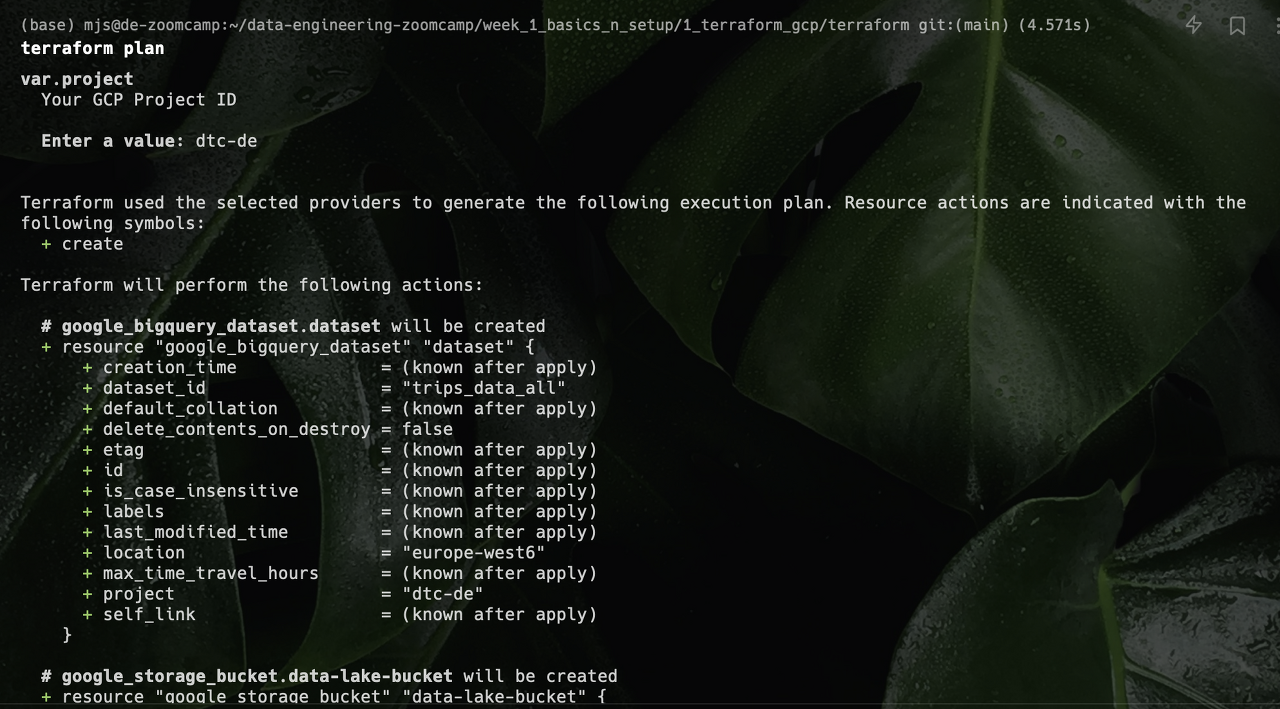 terraform plan 에서 GCP의 프로젝트 ID를 입력해줍니다.