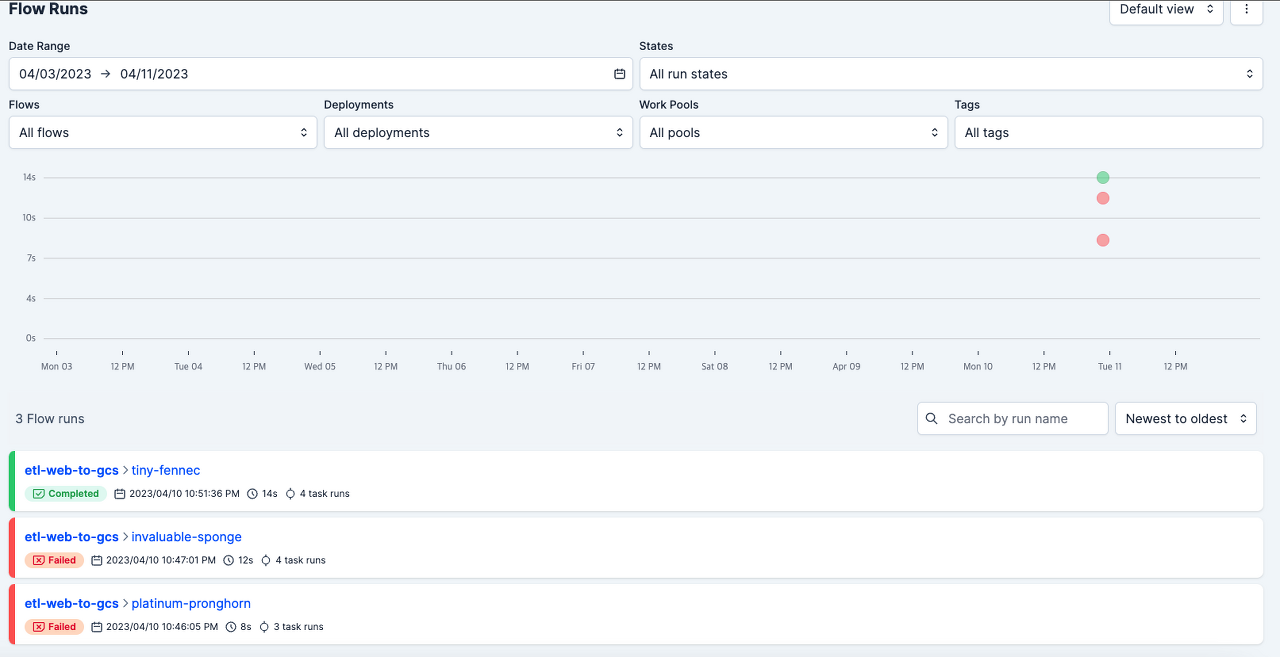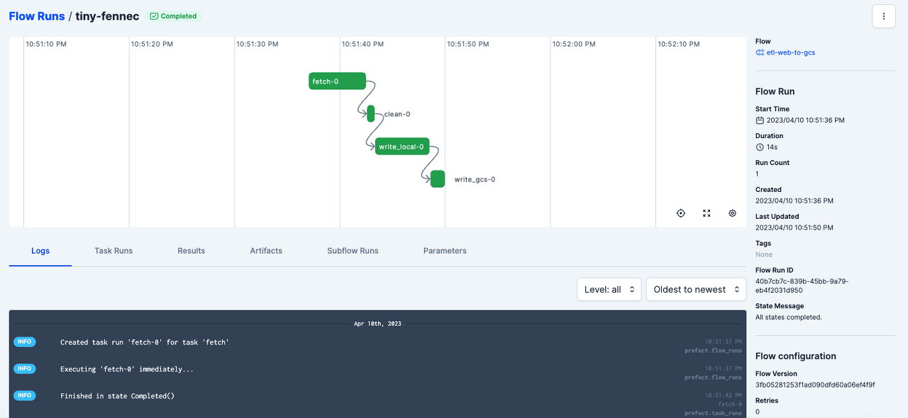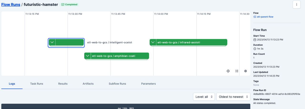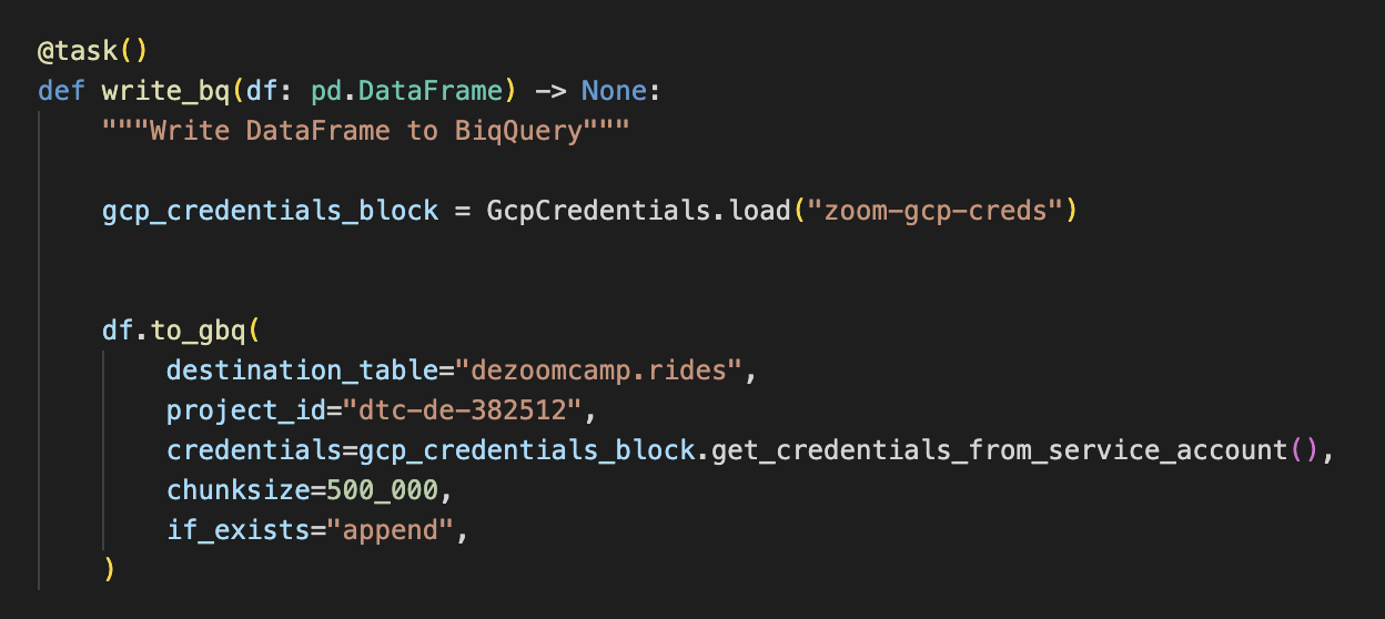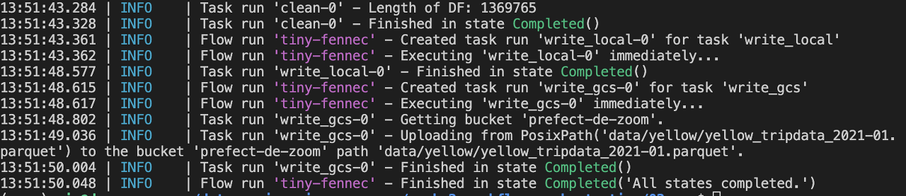 Cloud Storage 에서 BigQuery 데이터 베이스 로 Parquet 데이터를 수집하기 위해 Prefect을 쓰려고 합니다.