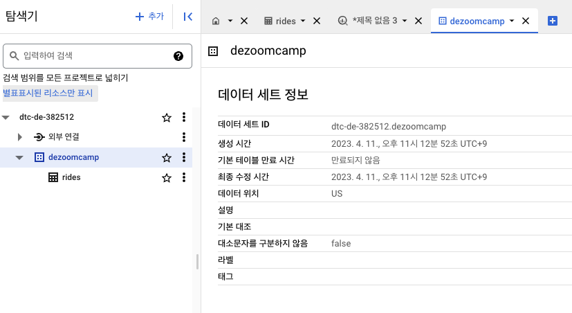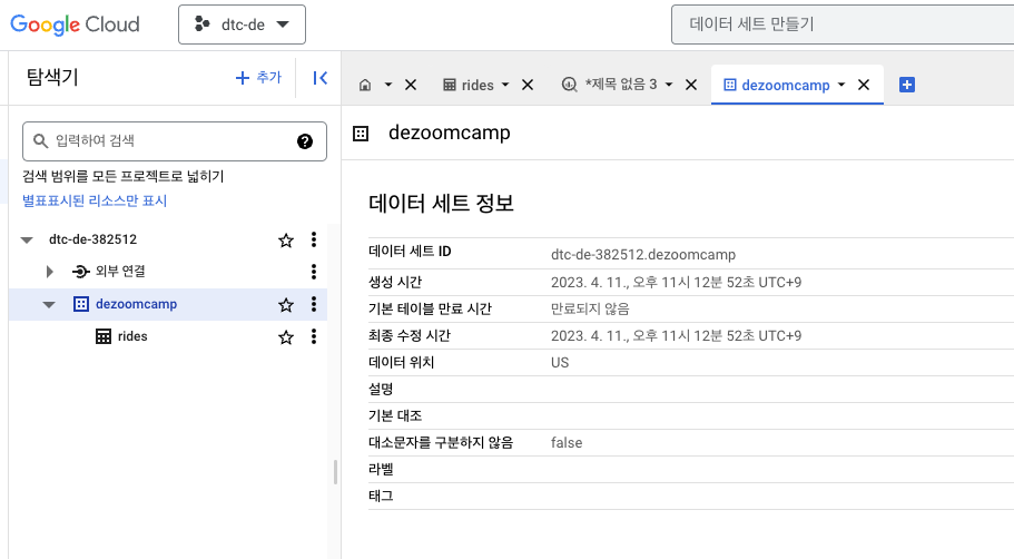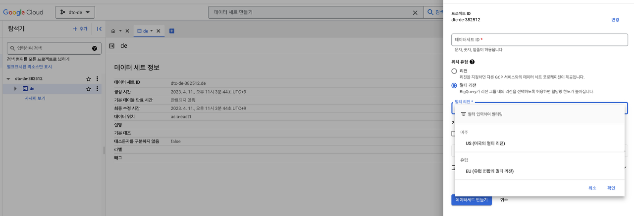 - GCP의 데이터 세트 만들기를 한 뒤에 GCS 버킷의 리전이 맞춰주면 되지만 저의 경우에는 GCS의 멀티 리전이 asia이고 빅쿼리에서 asia는 연동이 안되어서 데이터 이전을 해서 해결을 하려고 합니다.