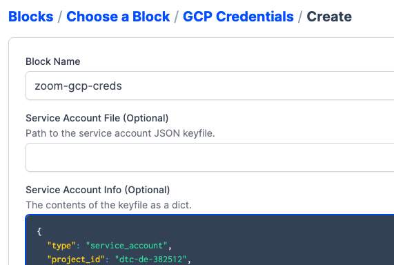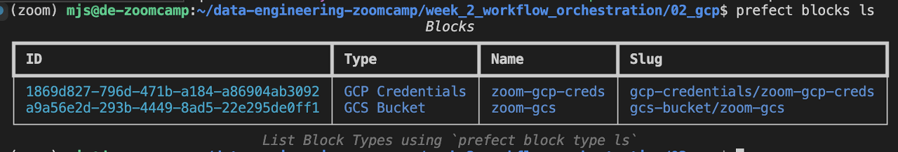 prefect에서 Blocks를 만들고 코드를 실행시키는데 ValueError: Unable to find block document named zoom-gcs for block type gcs-bucket 에러가 발생했습니다.