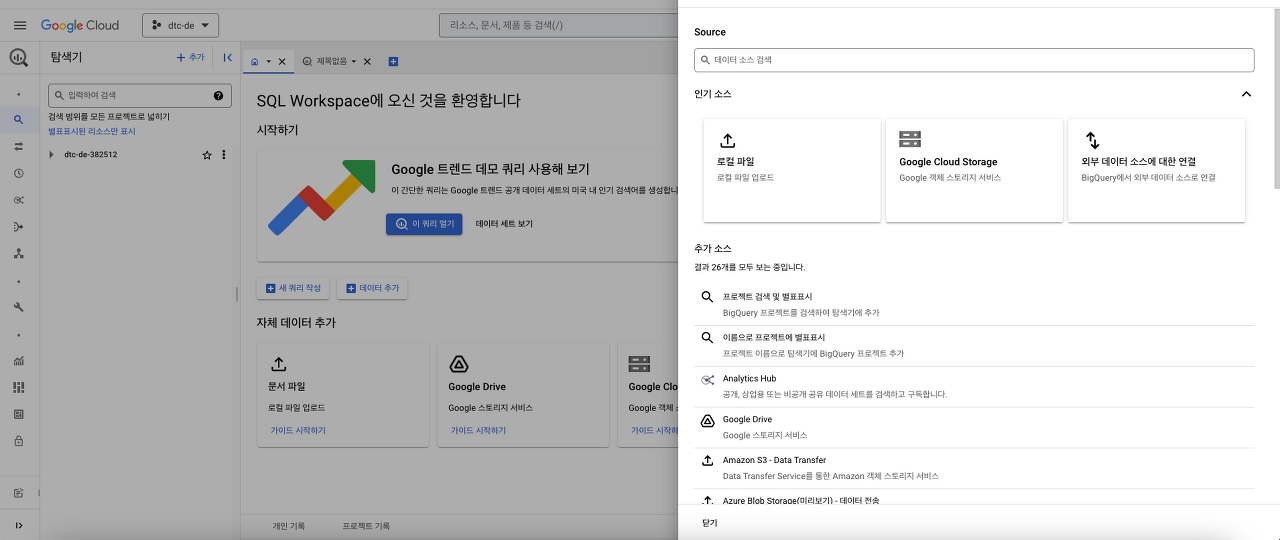 GCP > BigQuery > 추가 > Google Cloud Storage를 클릭합니다.