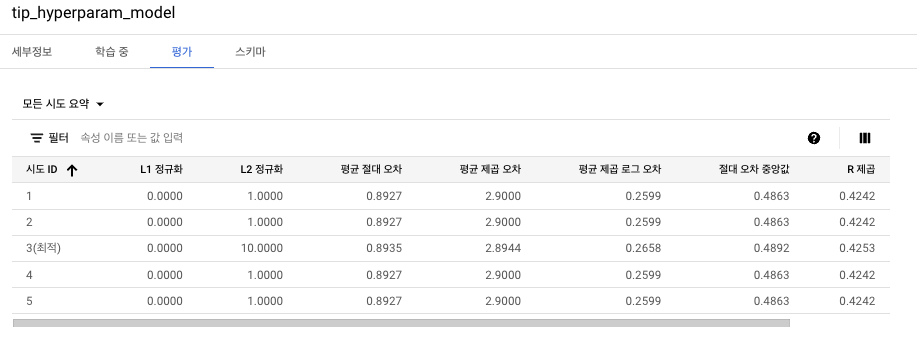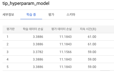 파라미터 튜닝된 테이블의 세부정보를 확인합니다.