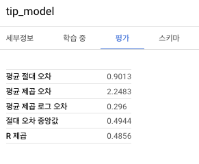 학습된 모델에 대한 평가 정보를 확인할 수 있습니다.