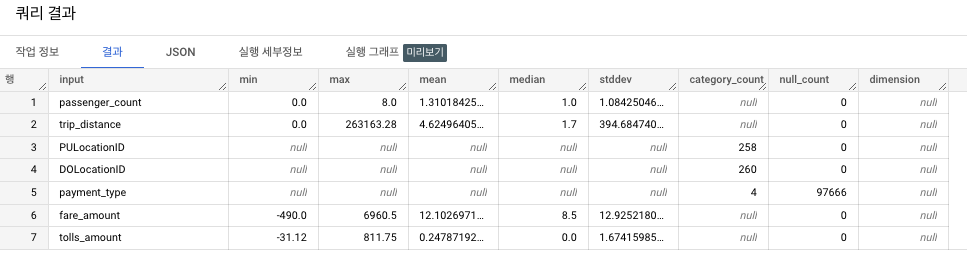 SELECT * FROM ML.FEATURE_INFO(MODEL `taxi-rides-ny.nytaxi.tip_model`);
