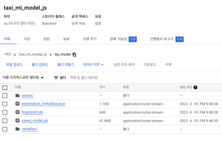 gsutil cp -r gs://taxi_ml_model_js/tip_model /tmp/model