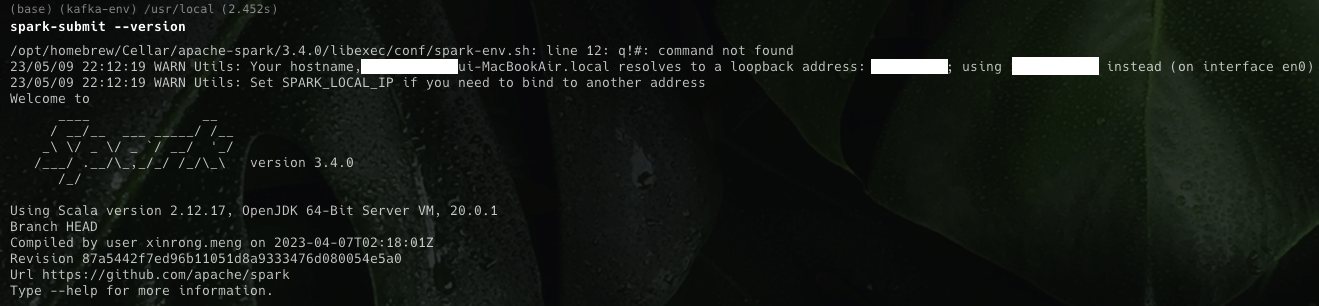 spark-submit --version 명령어를 실행해서 Spark 버전이 올바르게 출력되는지 확인합니다