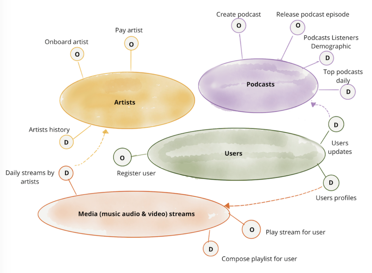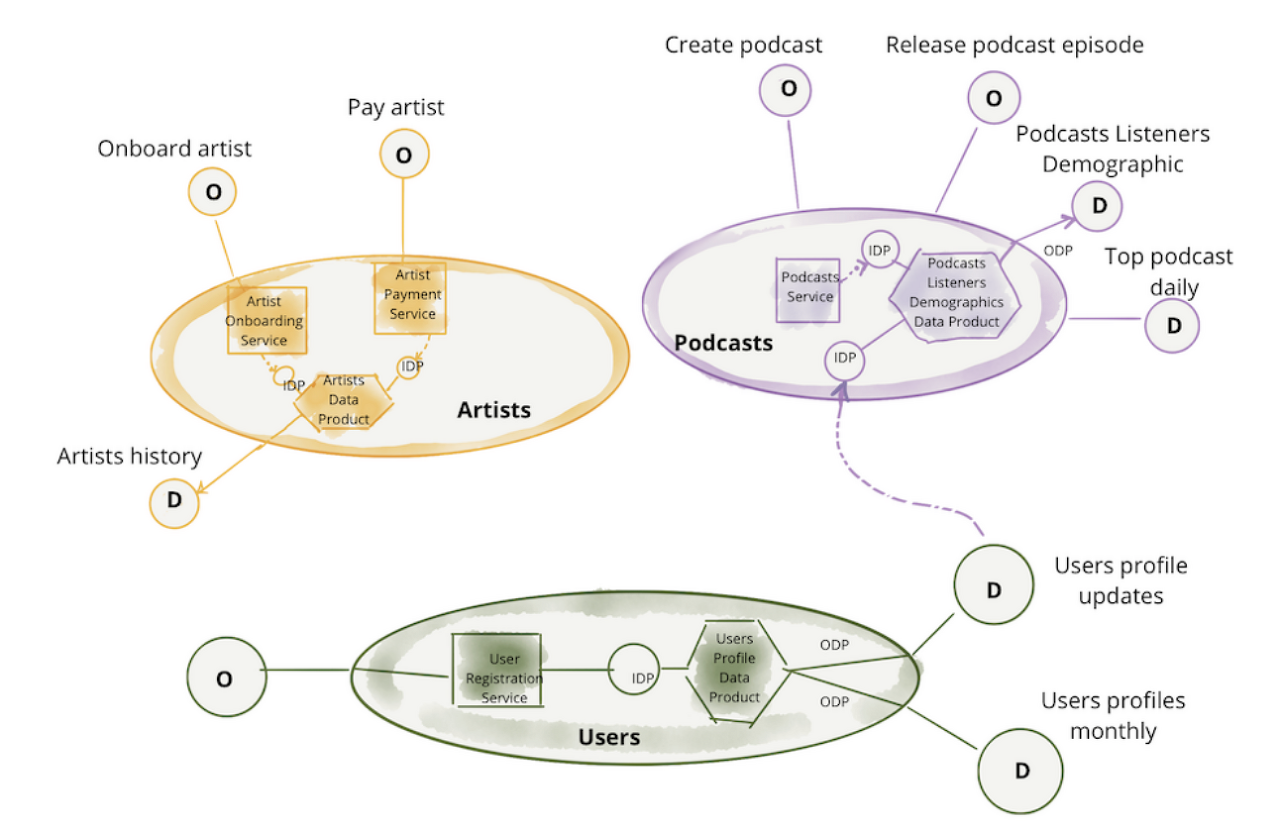 - 예를 들어 '팟캐스트'를 관리하는 팀은 팟캐스트를 공개하기 위한 API를 제공하는 동시에 '특정 기간 동안의 모든 팟캐스트 에피소드 데이터'와 같은 분석 데이터를 제공하는 책임을 져야 합니다.