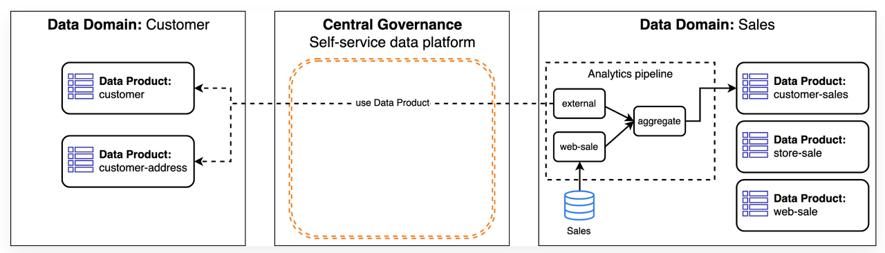 - 각 도메인은 하나 이상의 운영 API와 하나 이상의 분석 데이터 엔드포인트를 노출할 수 있습니다. 이렇게 함으로써 각 도메인은 자체적으로 필요한 데이터를 제공하고 다른 도메인과의 결합을 최소화하며, 확장 가능하고 유연한 아키텍처를 구축할 수 있습니다.