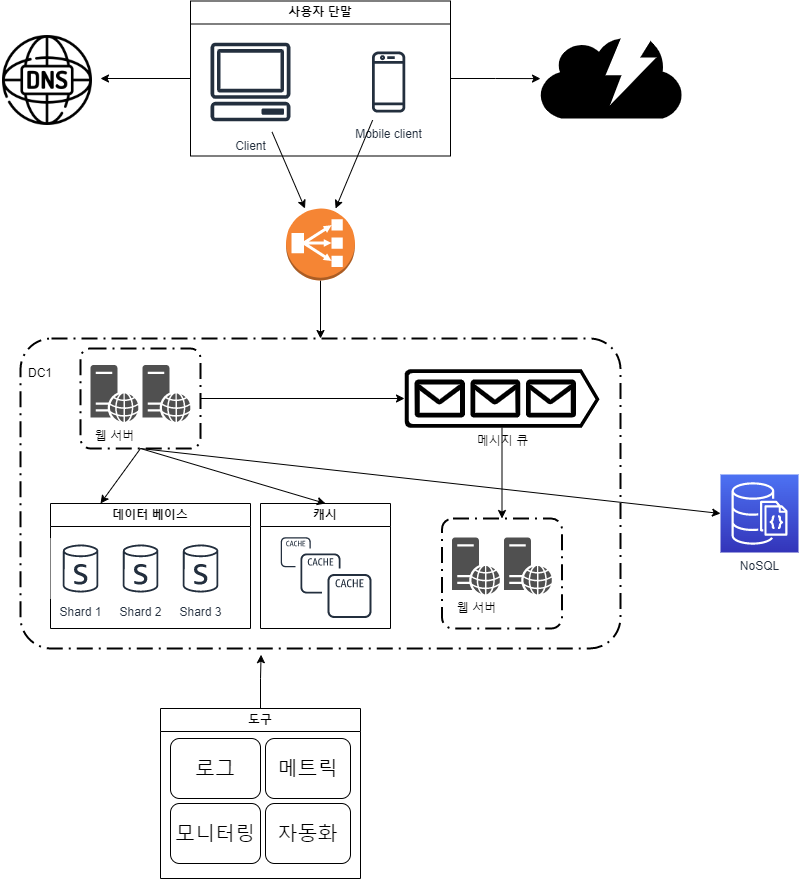 다음은 몇 가지 시스템 설계의 아키텍처를 도식화한 것입니다.