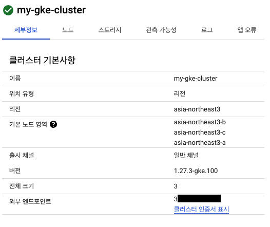 해당 주소가 먼저 GKE 클러스터의 외부 엔드포인트와 일치하는지 확인합니다.