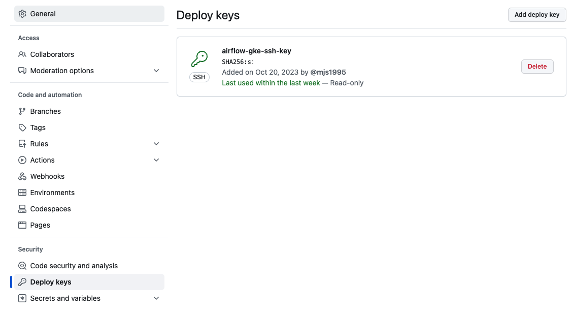 $ kubectl create secret generic airflow-gke-git-secret --from-file=gitSshKey=/home/mun_js/.ssh/id_rsa -n airflow