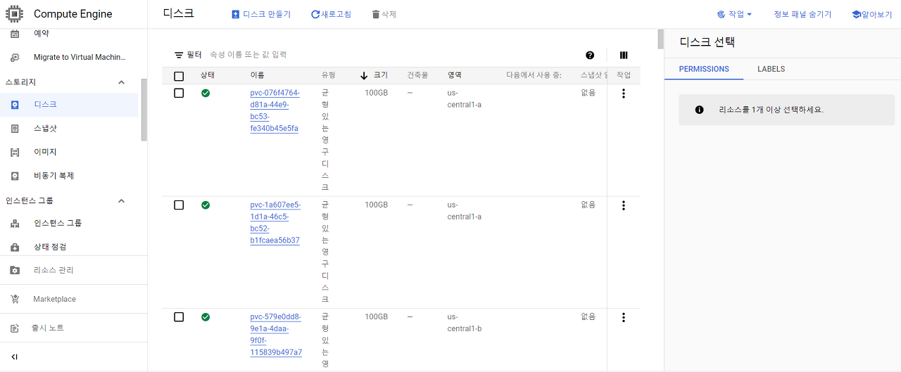 - 사용 안 하는 SSD 리소스를 정리하여 SSD 스토리지 용량을 확보하였습니다.