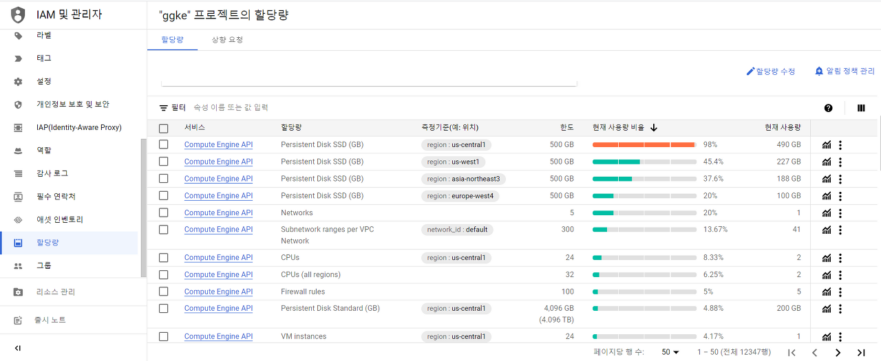 - GCP 콘솔에서 해당 리소스의 할당량을 늘리기 위해 요청할 수 있습니다. 이는 몇 시간 내지 며칠이 걸릴 수 있으며, GCP의 승인을 받아야 합니다.