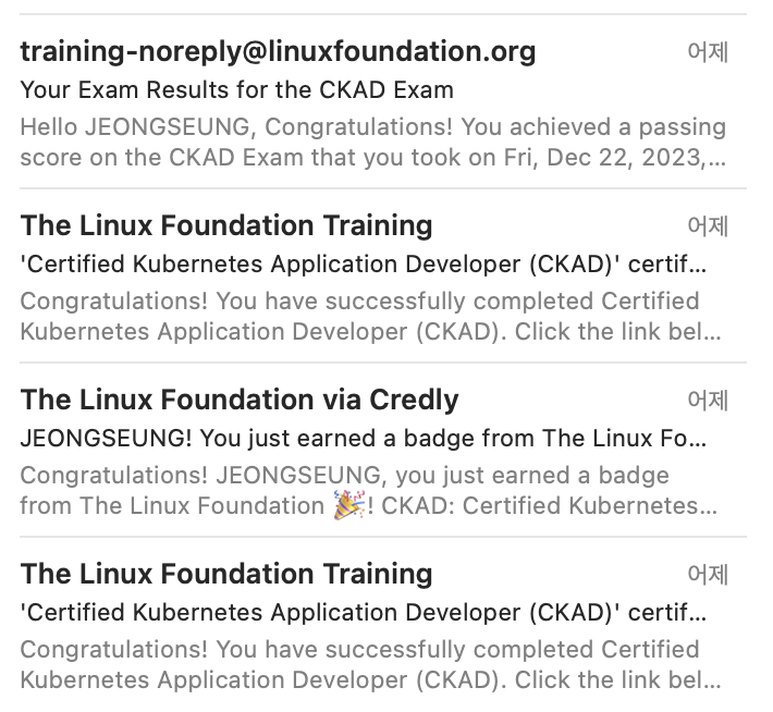 현재 내부사정으로 쿠버네티스 실무를 하고 있지는 않지만 gke 상에서 쿠버네티스를 활용해서 데이터 파이프라인 환경을 구성하면서 CKAD를 병행하면서 개념을 다시 잡으면 좋을 거 같아 시험을 보게 되었습니다. 11월 말에 사이버먼데이를 활용해 시험 50% 할인을 받았습니다.