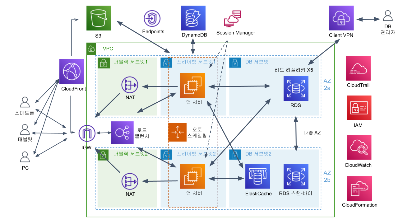 책을 읽고 나면 위와 같은 아키텍처를 설계를 따라 가는데, AWS 서비스의 기능적 지식을 넘어, 여러 서비스를 유기적으로 연결하여 견고하고 확장 가능한 아키텍처를 설계할 때 도움이 될 거 같습니다.