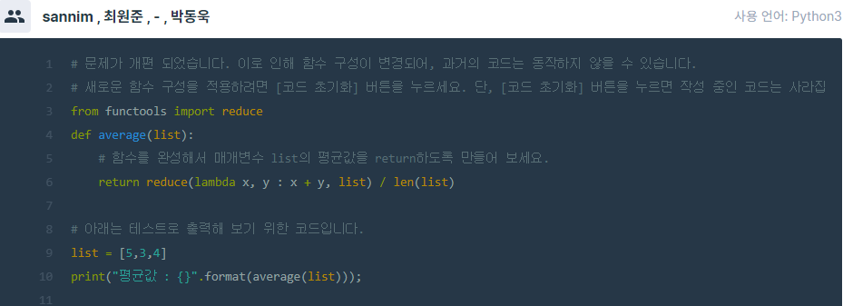 reduce함수를 써서 lambda를 적용하는게 인상적이였다. reduece는 넘파이에서 봤어서 그런지 친숙했다.