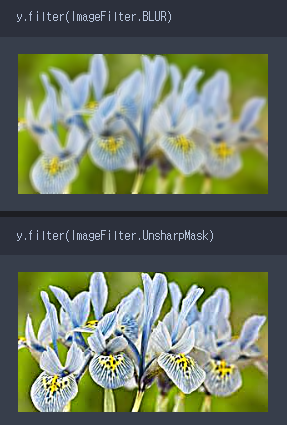 -각 이미지에는 필터를 적용할수있는데 BLUR는 흐릿한것 UnsharpMask는 더 선명해진다.