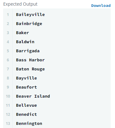 select DISTINCT CITY